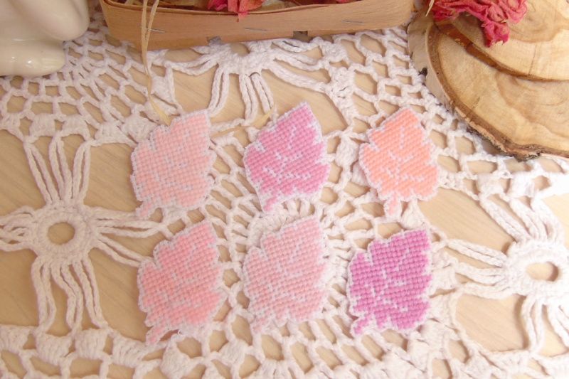 В декоре также использовала вышитые листики собственного производства - розовый и светло-желтый из двух разных наборов: