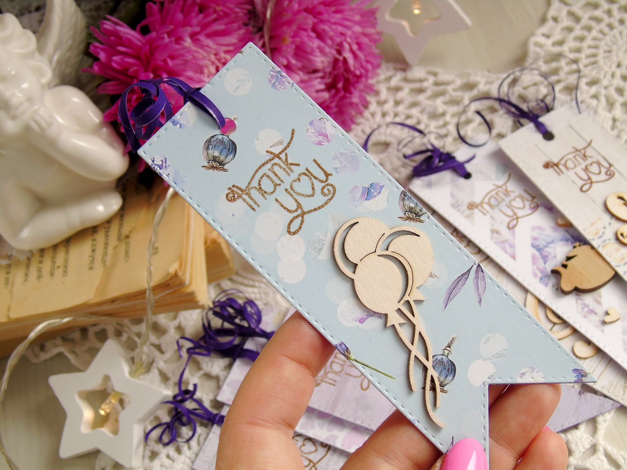 с тыльной стороны дизкартон фиолетового цвета, а с лицевой скрапбумага + мелкий декор и надпись.